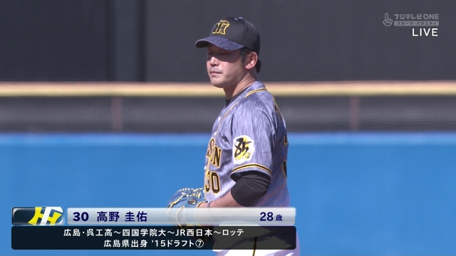 今季1軍初登板の阪神高野圭佑投手は1回無失点だった。4回から2番手で登板。先頭エスコバーには安打を許したが、次の中村を二ゴロ併殺に打ち取り3人で片付けた。