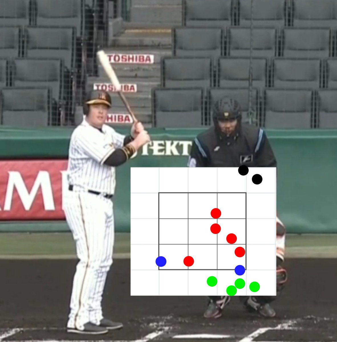 直球でインコース真ん中から高めを突くのがやはり多い。そこにインローへの落ちる球(スライダー、カット等)やアウトローへの落ちる球という攻め方が基本か pic.twitter.com/voiisOJmpJ