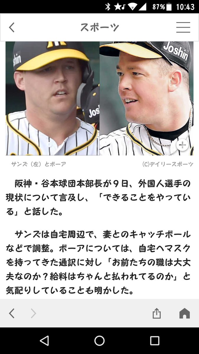 阪神・サンズ&ボーアは「できることをやっている」 通訳に対し気配りも/阪神タイガース/デイリースポーツ online https://www.daily.co.jp/tigers/2020/04/10/0013259976.shtml … @Daily_Onlineさんから