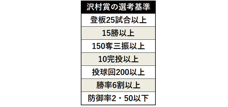 沢村賞実装初年度で取ってる
