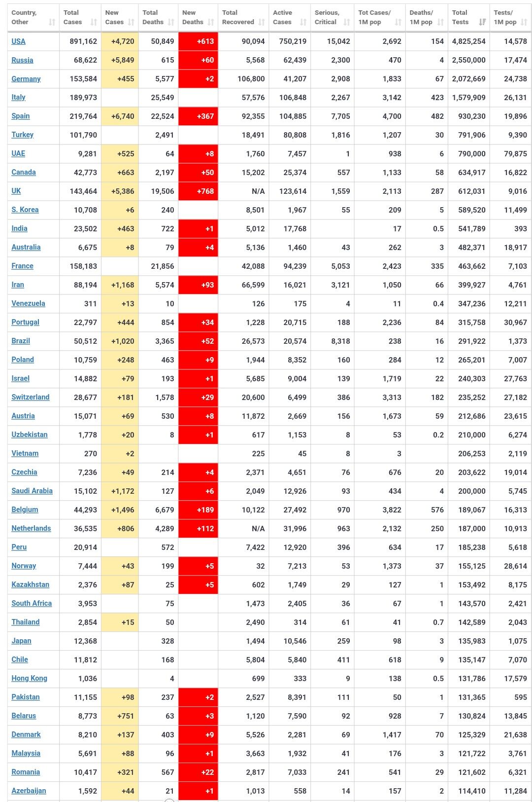 記事の立った時間 【ニューヨーク時事】米ジョンズ・ホプキンス大学システム科学工学センター(CSSE)の集計によると、新型コロナウイルス感染による米国の死者が24日午前(日本時間同日深夜)、5万人を超えた。米国の死者は日本時間20日に4万人を超えたばかりで、4日で1万人増えた。米国は感染者、死者とも世界最多。