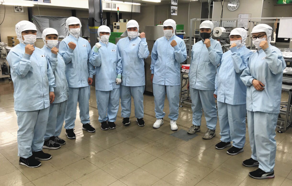 仕事の内容は検品や袋詰め、機械のオペレーターなどさまざまで、残業もある。同社は5月から5割増の1日60万枚に増産しており、メンバーは仕事一本の日々を送る。