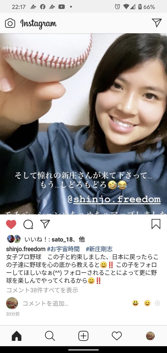 新庄剛志氏、女子野球選手のインスタライブに降臨「ライオンズ・レディース」六角彩子は大興奮