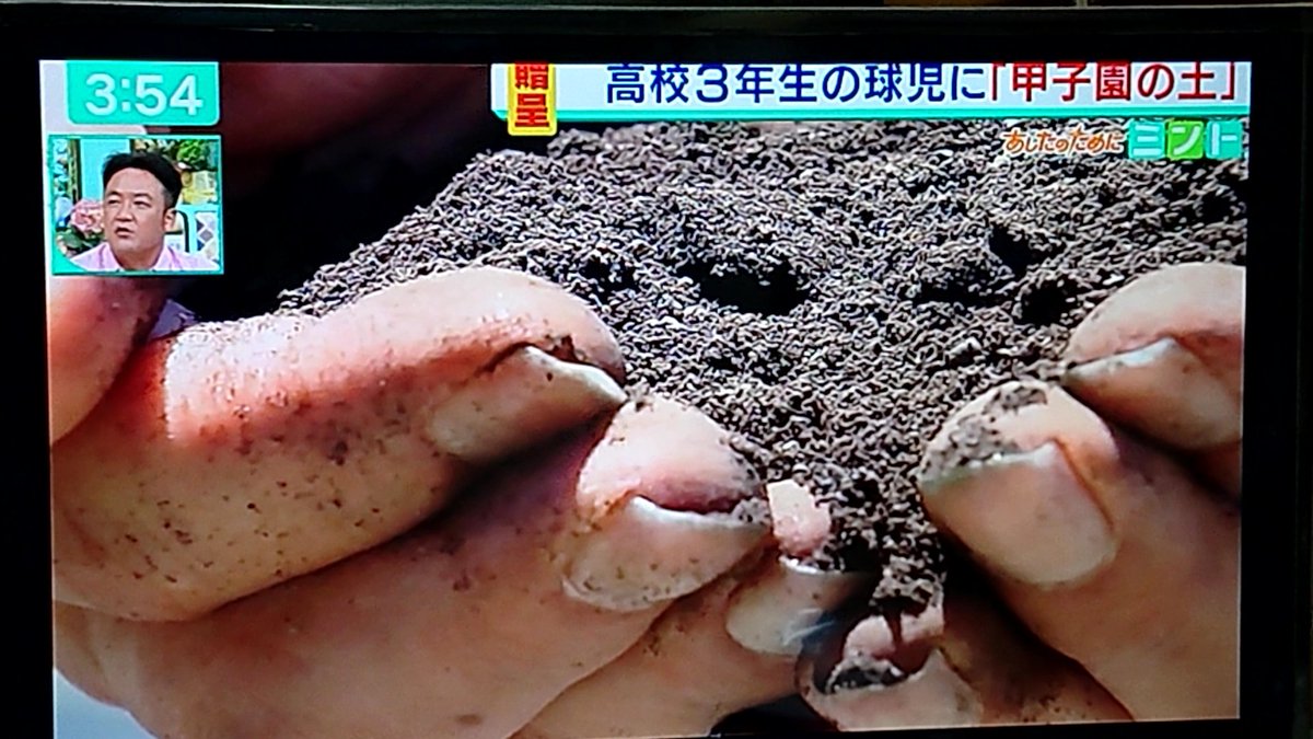で、阪神の矢野監督が甲子園の土でキーホルダー作りますってニュース出て土を両手ですくってアップになったの