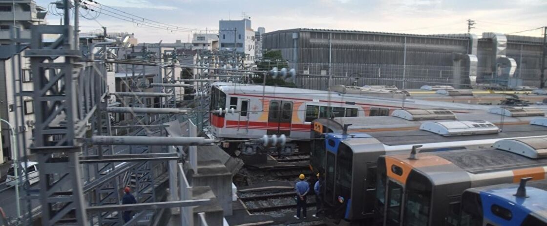 ◆阪神車庫で電車が脱線、社員けが 試験走行、車止めに乗り上げ