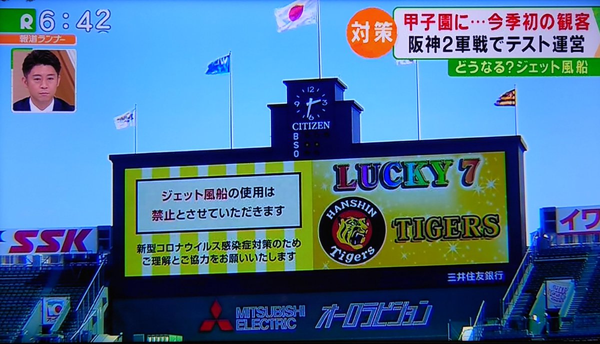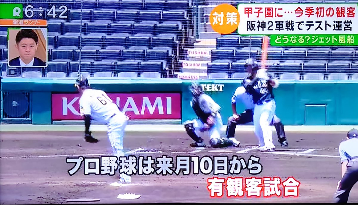 NHKで今日の2軍の観客動員した様子がニュースで流れていたけどマスク着用で入り口にはサーモグラフィーによる体温検査