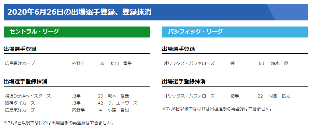 読売巨人軍公示はないんか?