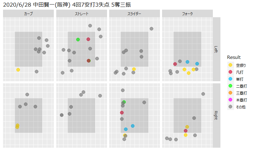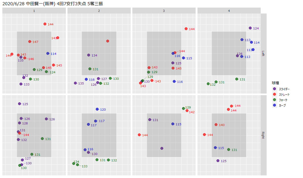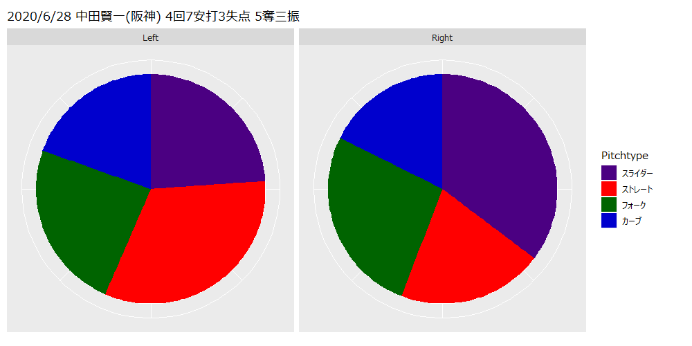 イニングごとの投球(4枚目)では、2回以降変化球を多投しながらかわしたことが分かる
