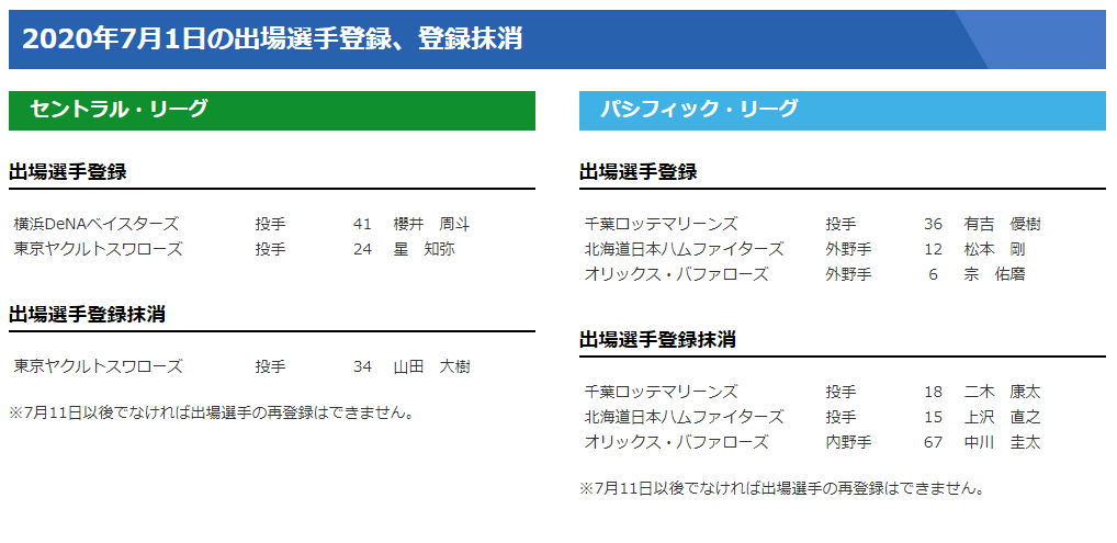 直近のピッチング悪かった山田が飛ばされたっぽい