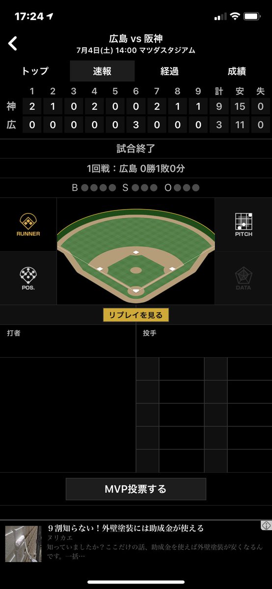 カープ🎏との初戦はなんとか勝ってくれたわ💪岩貞も今シーズン初勝利!⚾️