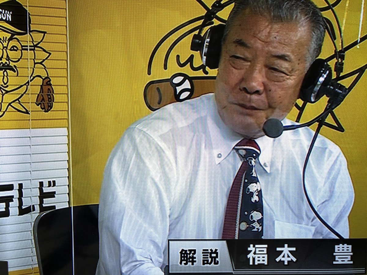 よくみておくれ、サンテレビの解説者世界の盗塁王福本豊氏のネクタイの柄がスヌーピー!きゃー!^o^