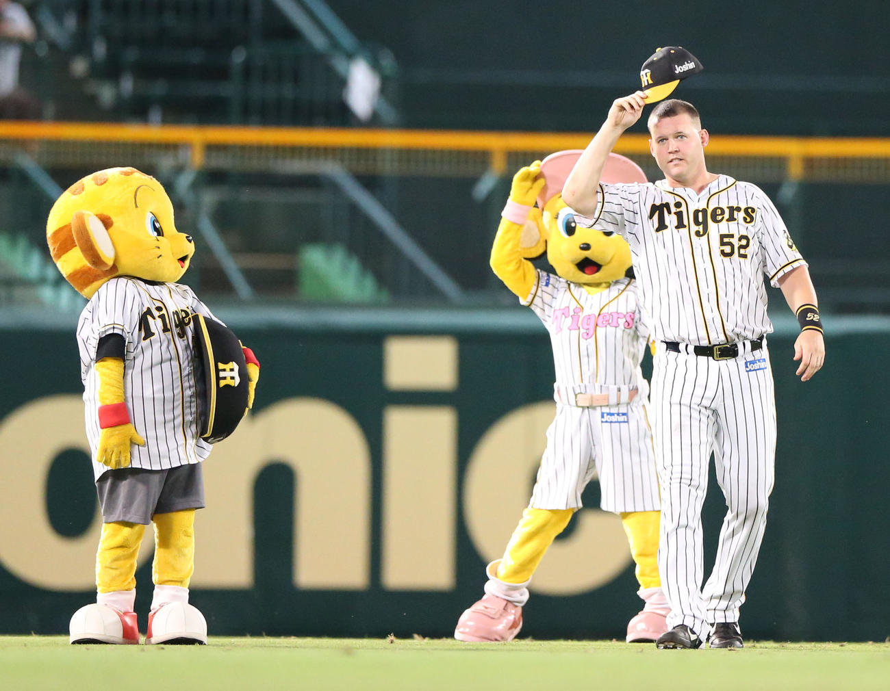 本拠地初のお立ち台でトラッキー人形をゲットした。「1つだったら子供たち(2人)がけんかになるから、早く2つ目がもらえるように頑張るよ」。小さなコーチにもう1つ人形を贈ることを約束した。甲子園のダイヤモンドをゆっくり堪能し、ヒーローインタビューでは「アリガトウゴザイマス! ガンバリマショウ!」と力強く宣言した。サンズのバットも上昇気流に乗り、チームを勢いづける。【奥田隼人】