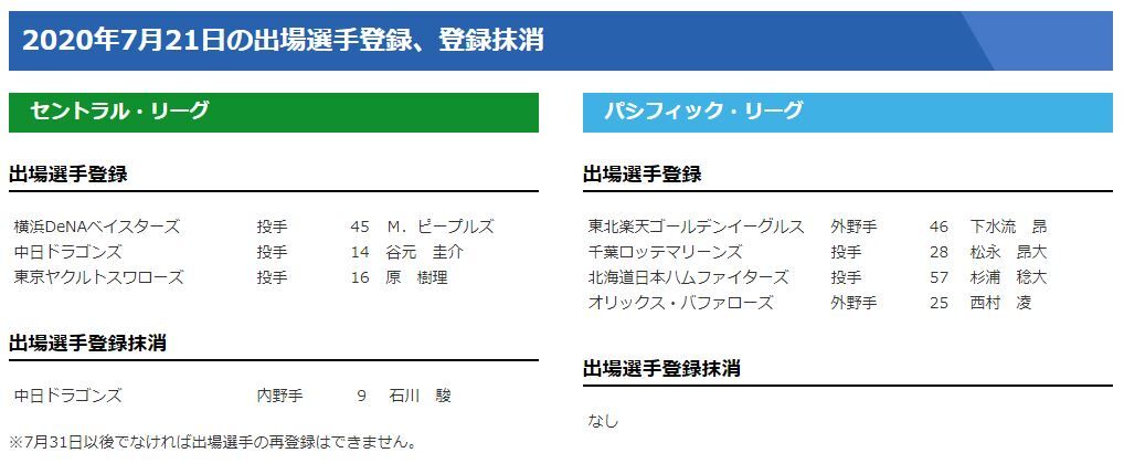 中日は石川やっと下げたか