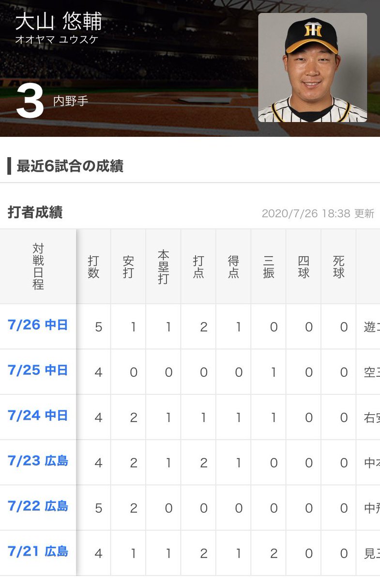 【阪神】大山悠輔がざんげの8号2ラン「一番大切な打席で打つことができずカバーしてもらった」猛虎ナインコメント集 : スポーツ報知 https://hochi.news/articles/20200726-OHT1T50163.html …