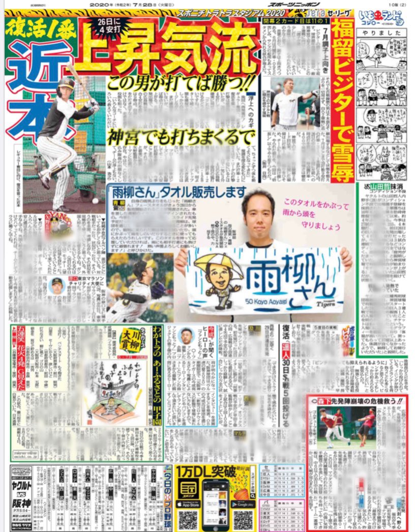 今日は山本さんが久しぶりに記事書いてましたね!近本選手の記事で7月が打率.288とは知りませんでした😁