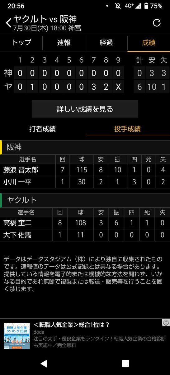 「素晴らしい投球だった。勝てる素晴らしい投球だったし、それが一番の収穫かな。次回は何とか勝たせてやりたいね」 https://headlines.yahoo.co.jp/hl?a=20200730-27301008-nksports-base …
