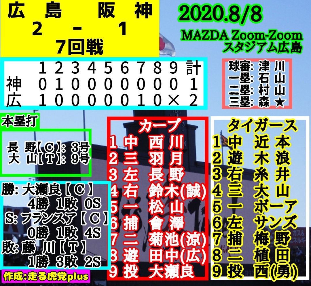 8/8(土) 阪神1-2広島 @マツダ