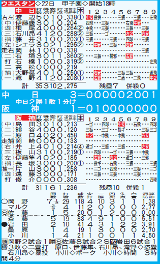 阪神 1-3 中日
