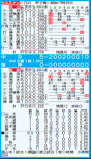 阪神 0-4 中日