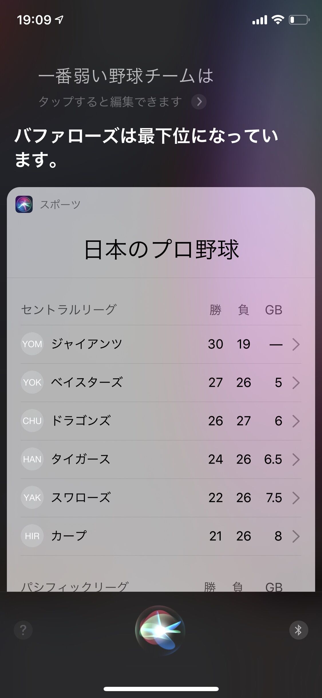 Siri「オリックスバファローズです」