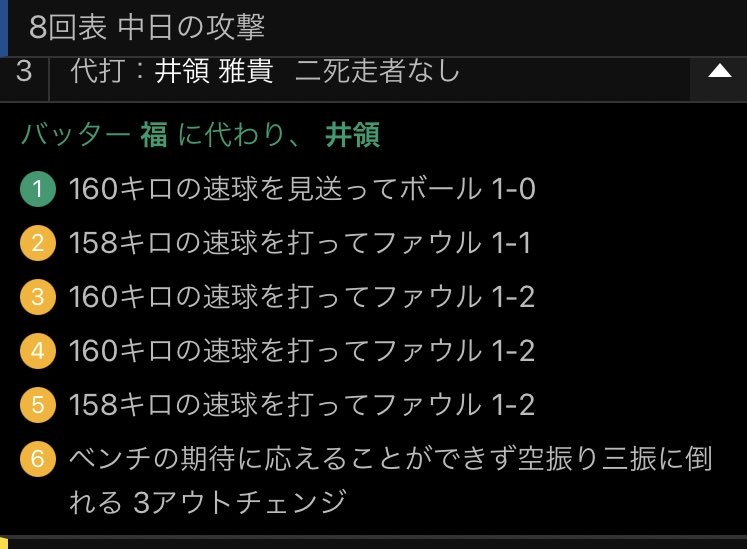 代打井領への初球にも160キロを計測し、3球連続160キロをマーク。さらに160キロを2球追加した後、内角低めスプリットで空振り三振を奪った。