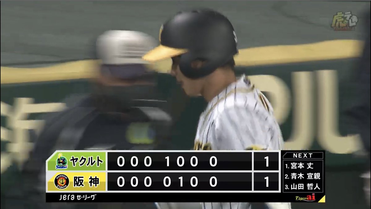 阪神のドラ2ルーキー・井上が七回に代打で登場。マクガフの前に空振り三振に倒れた。