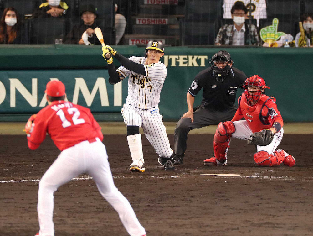 打線は最後の最後に広島先発・九里を攻略。それまで安打は近本の右越え二塁打のみだったが、9回1死から近本、代打・原口が連打し一、二塁とすると、糸井の右前適時打で1点を返し九里をKOした。しかし、そのあとは4番・大山、サンズが凡退。反撃は及ばなかった。