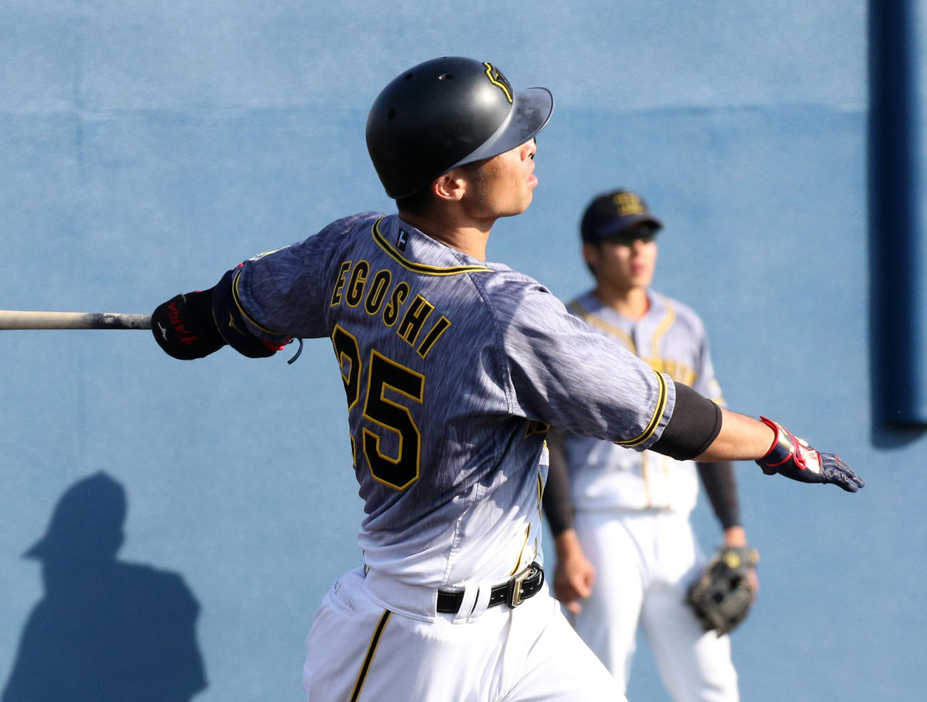 阪神江越大賀外野手が2戦連発の2号3ランを放った。