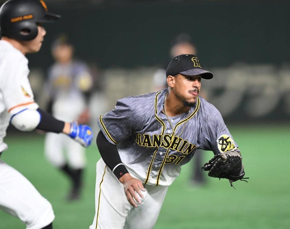 その後、西勇は大城にも右前打を浴び、1死一、三塁のピンチ。ここで投手今村が一塁にセーフティスクイズを試みた。焦ったマルテが捕球ミスし、犠打失策で3点目を失った。
