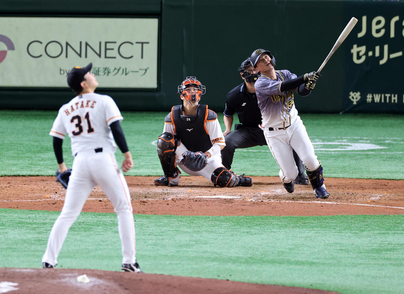 2点リードの5回2死二塁。巨人畠のカットボールを左翼席上段まで運ぶ特大アーチを放った。「打ったのはカットボール。初回のチャンスの場面で打つことができなかったので、取り返すことができて良かったです。(感触は)完璧でした」。9月18日中日戦(ナゴヤドーム)以来となる自画自賛の1発で、宿敵巨人を突き放した。