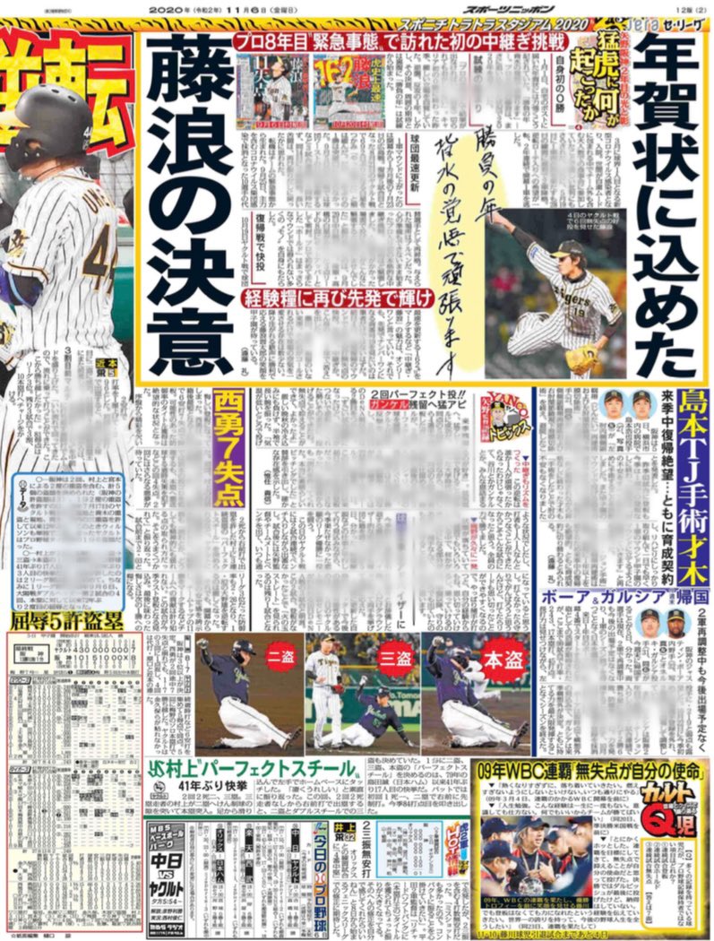 🐯梅野選手!6点差逆転決めた会心Vアーチ🐯ガンケル投手!流れ変えたリリーフ快投で白星🐯ドラ6中野選手!いきなり同期対決 伊藤将撃ちでアピール宣言🐯藤浪投手!年賀状に込めた決意 pic.twitter.com/vdRJPqqOru
