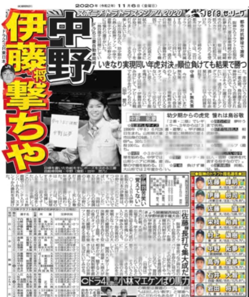 都市対抗で虎新人対決 阪神ドラ6・中野 ドラ2の伊藤将打ちで“先制”アピールだ!― スポニチ Sponichi Annex 野球 https://www.sponichi.co.jp/baseball/news/2020/11/06/kiji/20201106s00001173062000c.html …