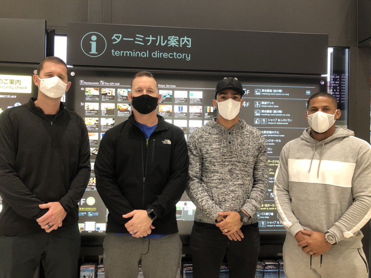 ジョン・エドワーズ選手、ロベルト・スアレス選手、ジョー・ガンケル選手、ジェリー・サンズ選手、ジェフリー・マルテ選手が、本日帰国いたしましたのでお知らせいたしま