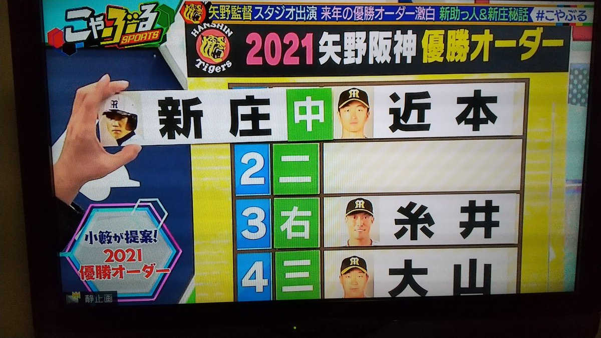 阪神・矢野監督が関西の番組で自ら発表…『2021年優勝オーダー』はこれだ 期待の“新助っ人”は3番に(関西テレビ) - Yahoo!ニュース https://news.yahoo.co.jp/articles/cf056841488d086654e0a44cab9d65dcc3aa6606 …