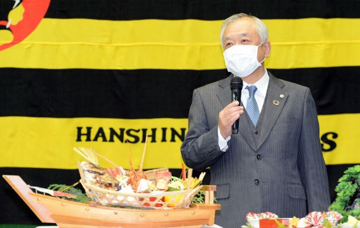 「選手たちはきっと、去年よりもパワーアップして『優勝を狙うぞ』と懸命にトレーニングに励んでもらっていると思う。その努力がこのコロナ禍のなかでストレートに実現できるかのかな、そういうふうに思われる方も多いのではないか。ですけれども(コロナ禍は)必ず終息する。まずは信じること。そのためにあらゆる努力を惜しまない。みんなで必死になってコロナの後の世界に向けて、新しいシーズンに向けて、頑張ってまいりましょう。その先には必ず阪神タイガースがチャンピオンフラッグを掲げている。そういう形があると私は信じております」