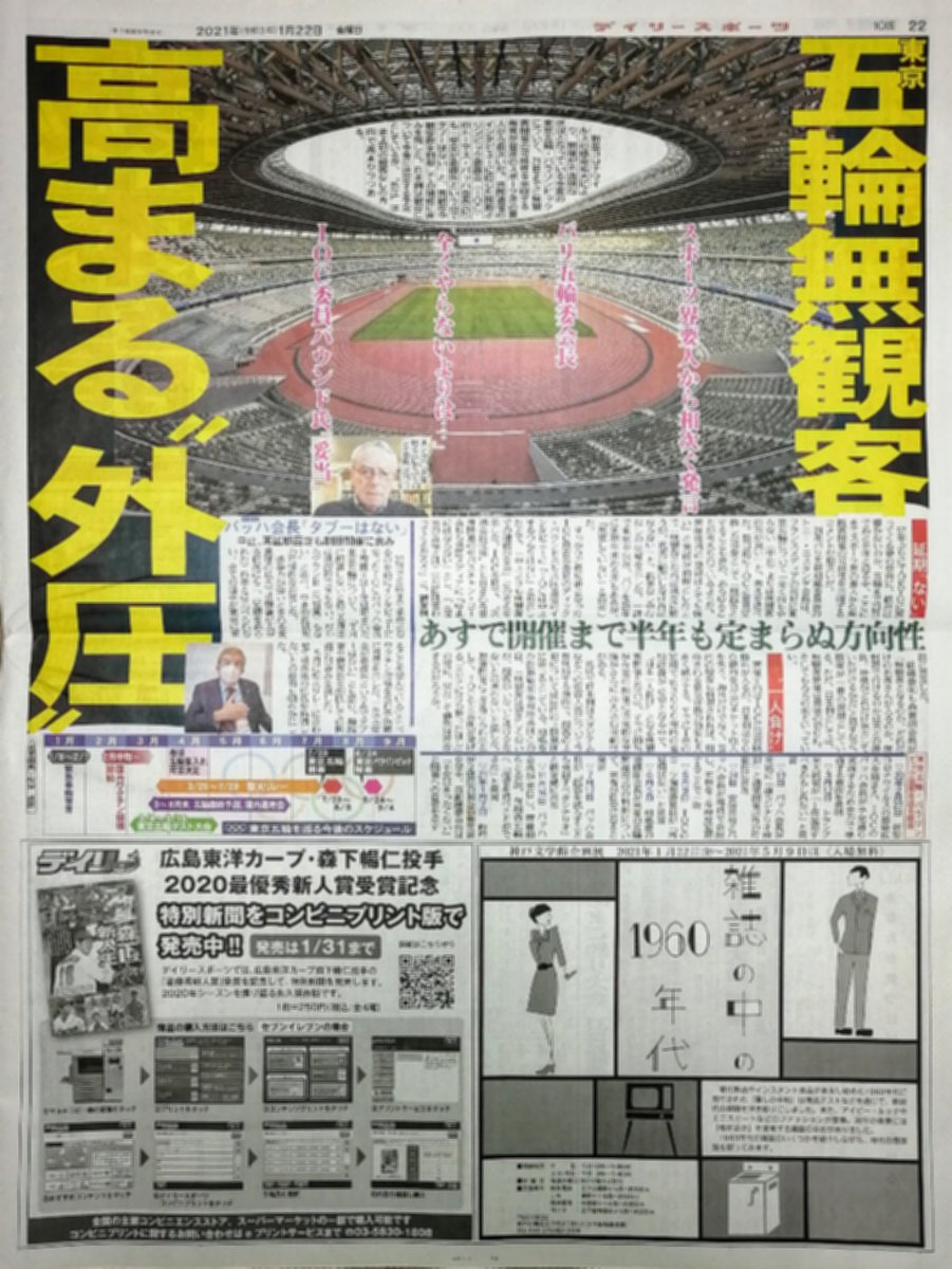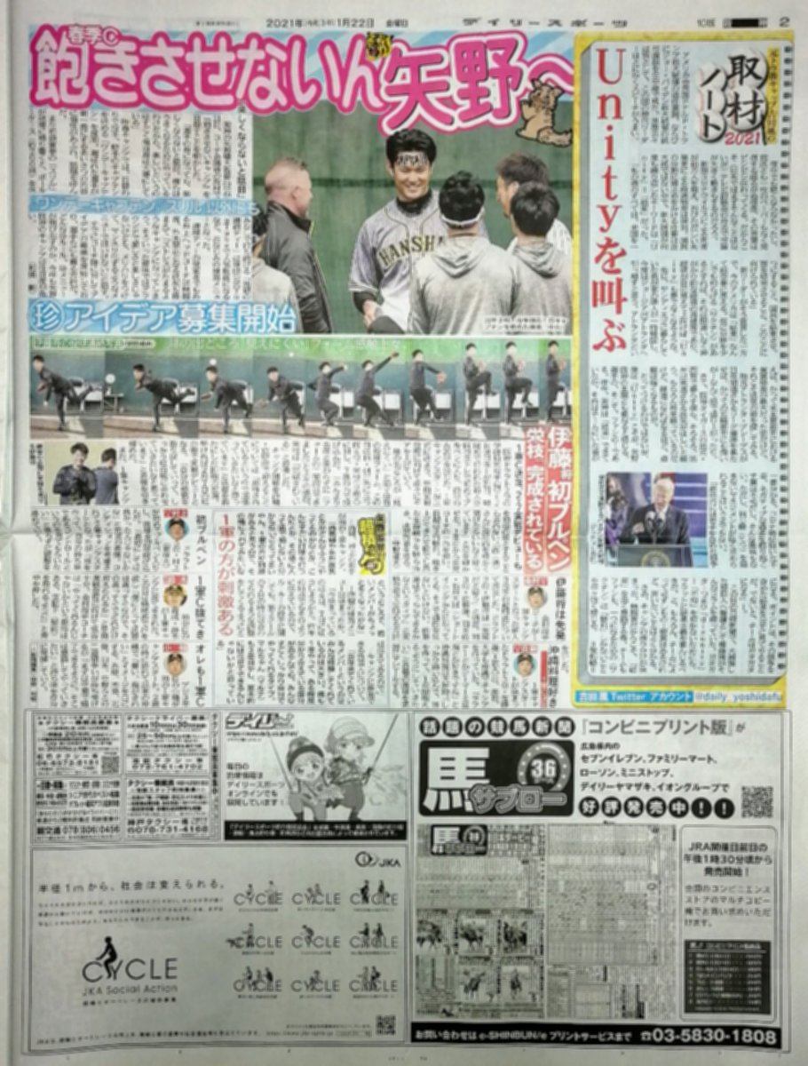 22日の日刊スポーツ大阪版1面。阪神ドラフト1位の佐藤輝明内野手が、球団史上最速の実戦となる2月4日の紅白戦でデビュー。1軍キャンプメンバー42選手を発表。新人は佐藤輝ら即戦力6人の沖縄行きが決定。右翼の定位置獲得を目指す佐藤輝は「バッティングをアピールしたい。結果第一」 pic.twitter.com/8PscslGq11