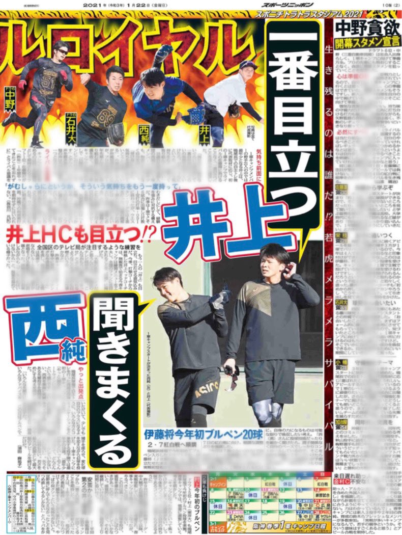阪神・西純 ドラ1佐藤輝&井上斬る!初1軍キャンプスタート、2・4紅白戦でアピる/阪神タイガース/デイリースポーツ online https://www.daily.co.jp/tigers/2021/01/22/0014022972.shtml … # @Daily_Onlineより