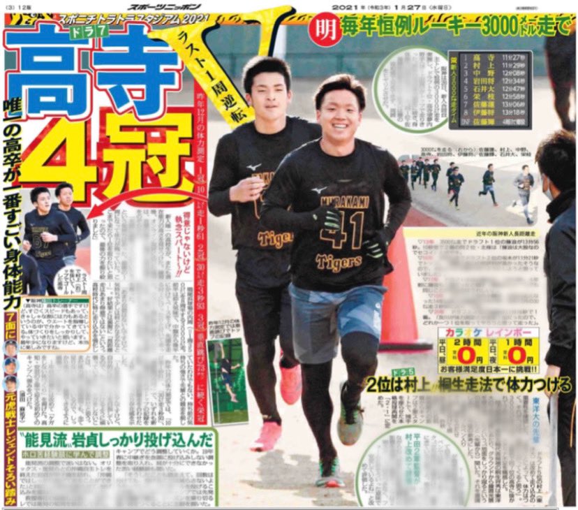 阪神D1・佐藤輝、恒例3000メートル走でヒヤリも…腰の違和感で途中棄権 - SANSPO.COM https://www.sanspo.com/baseball/news/20210127/tig21012705030004-n1.html … @sanspocomから