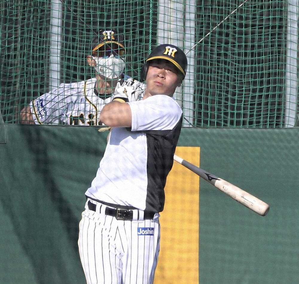 阪神のキャンプが1日から沖縄県宜野座村で始まり、期待のドラフト1位・佐藤輝明内野手(21=近大)が、鮮烈“デビュー”を飾った。午後から行われた屋外フリー打撃で、矢野監督ら首脳陣の熱視線を背に受けつつ、計89スイングで右へ左へ9本の柵越え。推定飛距離135メートルのバックスクリーン直撃弾や左越え弾など次々と宜野座の空にアーチを描いた。特に左翼、中堅方向に計5本と、広角に長打を打てる技術とパワーも誇示。これには、虎党も“歓喜の声”を寄せた。