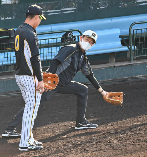 9時からスタートした守備練習。遊撃のポジションに就くと、久慈コーチ、川相臨時コーチの指導を受けながら藤本コーチの打球を処理した。合間には、糸原が川相臨時コーチからアドバイスされる場面も。約30分間行い、守備に磨きをかけた。