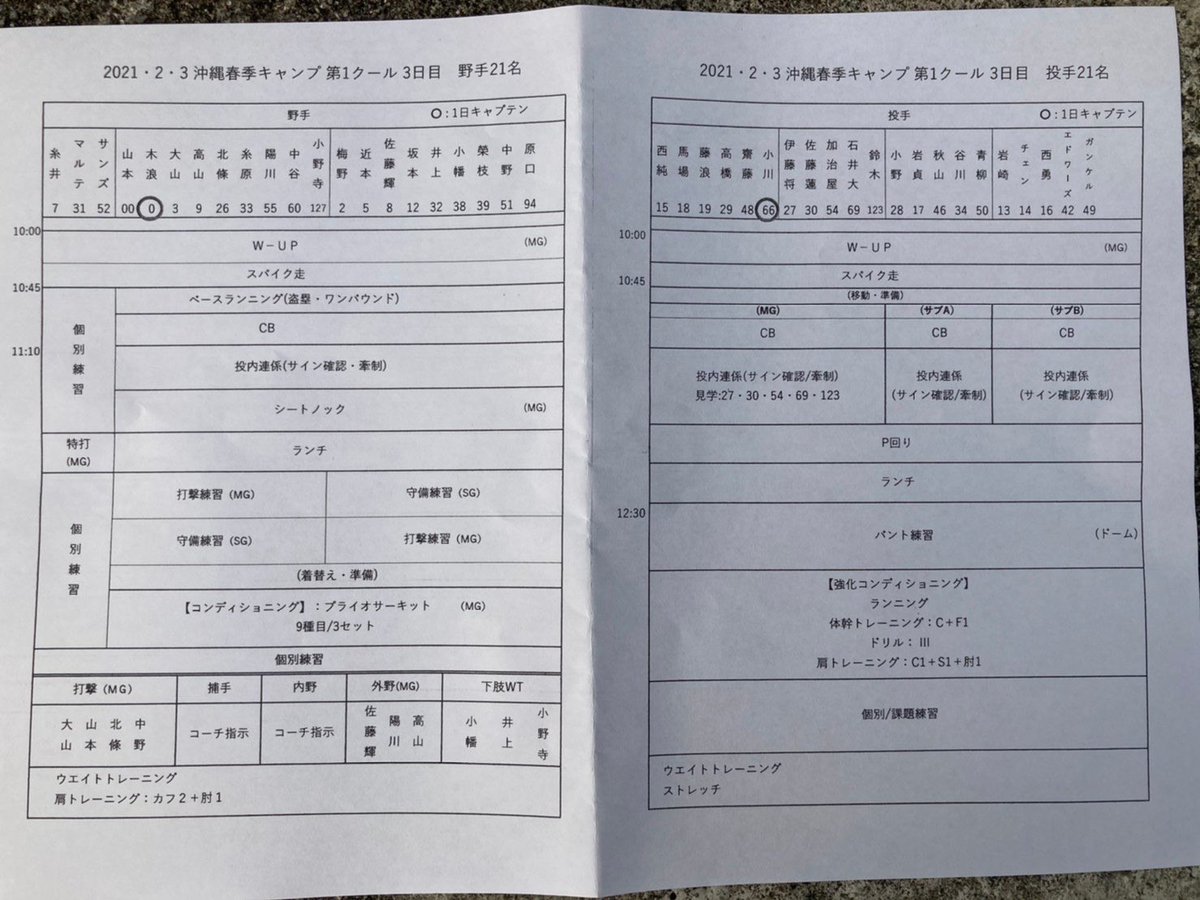 阪神の1軍キャンプで導入されているワンデーキャプテンの3日目は野手が木浪、投手は2年目の小川が務め、ピンクユニホームでチームを引っ張った。北條、小幡、そしてルーキー中野らと遊撃定位置を争う木浪は川相臨時コーチとも積極的にコミュニケーションを取り、充実したキャンプのスタートを切っている。初の1軍キャンプとなった小川はキャプテン指名に少し緊張の面持ちで、盛んに声を出していた。