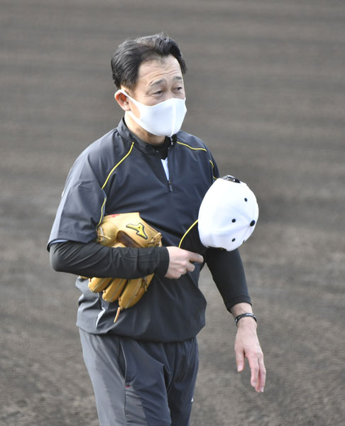 阪神春季キャンプ(沖縄・宜野座)に臨時コーチとして参加している川相昌弘氏(56)が3日、投手陣を前にバント指導を行った。