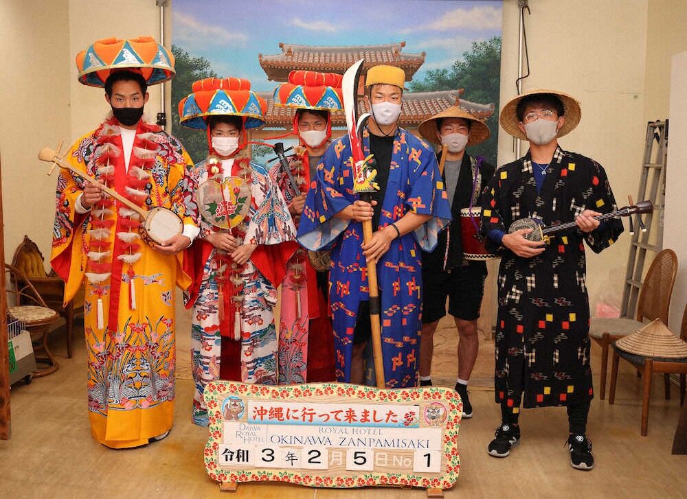 琉球衣装を着用しての撮影では、前日の紅白戦で新人最速安打を放ったドラフト6位の中野拓夢内野手(24=三菱自動車岡崎)が「女装は結構自分の中では似合うのかなとは思ってはいたので」と、率先して女装を選ぶなど和やかな雰囲気。宿舎周辺のビーチを歩いた佐藤輝は「将来ここに住みたいなと思いました。移住ですね」と話し、ドラフト4位の栄枝裕貴捕手(22=立命大)も「老後は沖縄で決まりかなと」と語るなど、沖縄の魅力に取りつかれた様子だった。