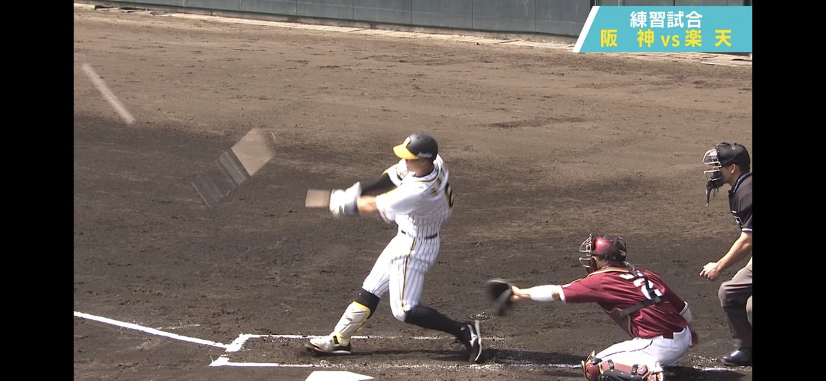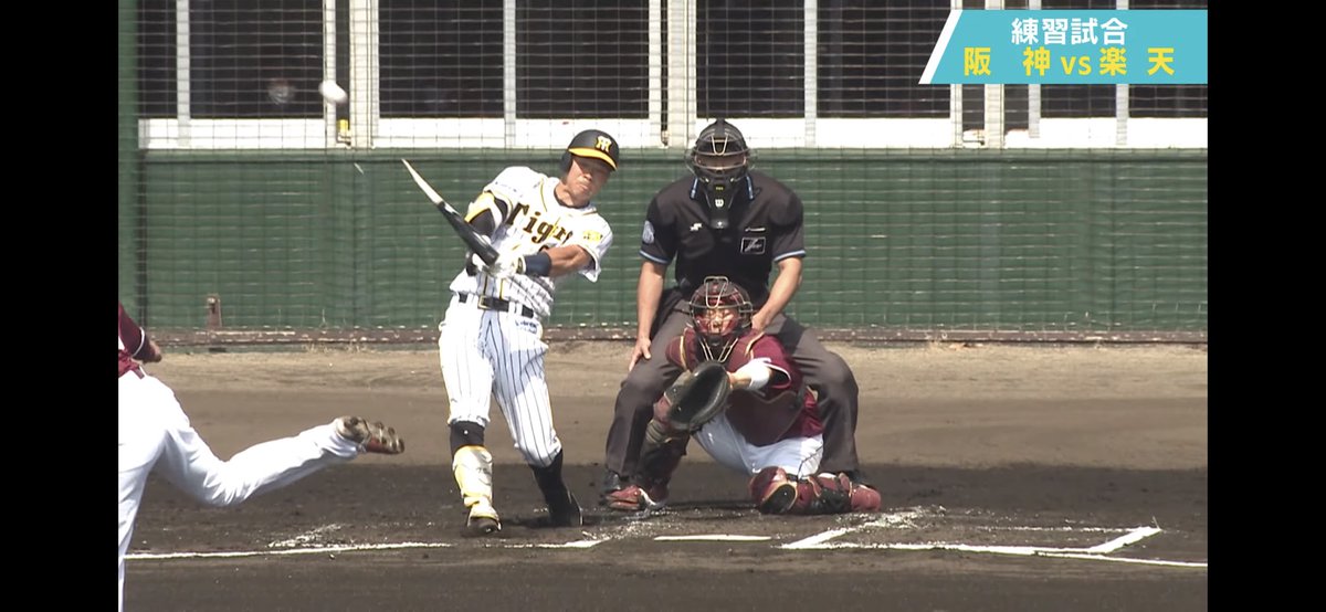 16日、宜野座で行われた阪神対楽天との練習試合。スタメンには3番に佐藤輝、4番に井上が入った。将来の虎のクリーンアップを撮影するため、外野スタンドのライトポール付近のフェンスに、へばり付く様にカメラを構えた。