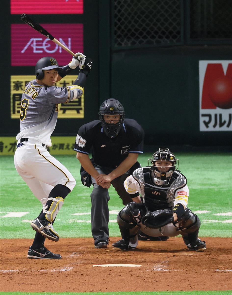 執念の12球! 阪神のドラフト1位・佐藤輝明内野手(21)=近大=が7日、ソフトバンク戦(ペイペイドーム)に「2番・左翼」で出場。三回の第2打席に、ソフトバンクの先発・和田毅投手(40)と真っ向勝負を繰り広げた。ファウルで12球粘った末に空振り三振に倒れたが、規格外の対応力を、日本一チームを支えるベテラン左腕も絶賛した。
