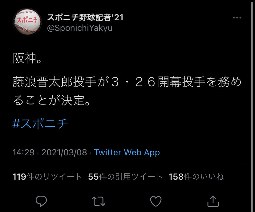 西の状態があんまり良くないから、秋山、青柳、藤浪の誰かを開幕投手ってなったら藤浪でもええやろ