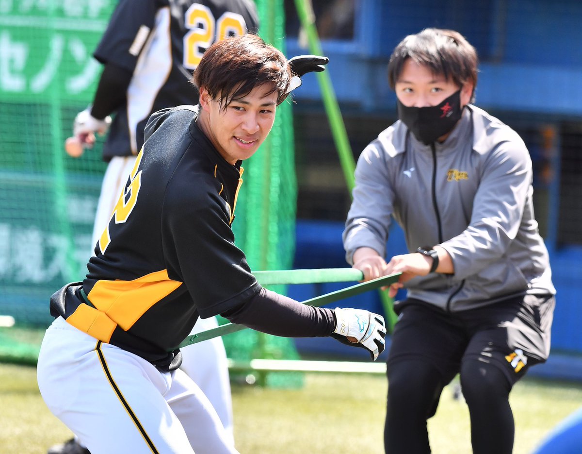 阪神植田海内野手(24)が16日、1軍に合流した。オープン戦・ヤクルト戦(神宮)の試合前練習に参加した。