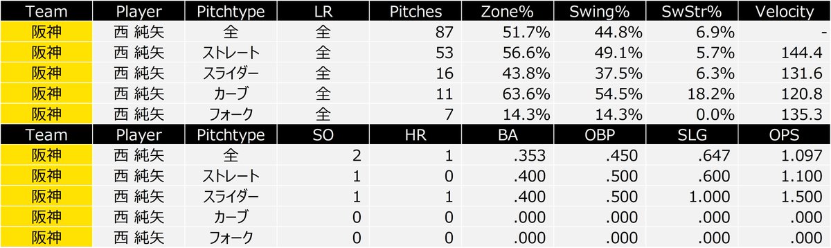 まあ西純矢は高卒2年目だし三番手六番手が不安定だから出番はまだまだあるしな