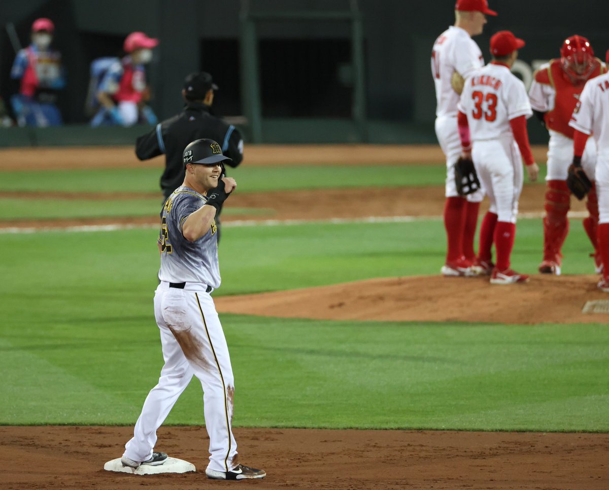 この日は4試合ぶりの無安打に終わるも、4点リードの6回1死三塁からはきっちり中犠飛をマーク。間一髪でホームインした三塁走者マルテに「本当に良く走ってくれた」と感謝するスタイルが頼もしい。矢野監督も「サンズのスキを突いた走塁も見事やったし、マルちゃんがタッチアップでかえってきたのも勢いがつくし、価値もある」と助っ人2人をたたえた。