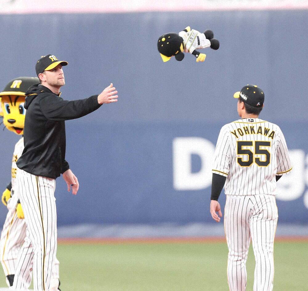 試合後のヒーローインタビューでは「良い選手たちが後ろで守ってくれるので、気楽に投げることができて、同点でしっかり抑えて、最後勝つことができてよかった」と感謝。6回の勝ち越しについても「本当にチームの勝利だと思う。後ろでしっかり守ってくれて、ピンチをしのいだ後に陽川選手が打ってくれて、マルテがしっかり走ってくれて、勝ち越すことができた」と、ナインの奮闘を称えるナイスガイぶりを見せた。最後に、ファンに向けては「タイガースファン、イツモ、アリガトウ」と日本語でメッセージ。トラッキーを“投げちゃった”ことはご愛敬として、虎党からは“もっと投げて”と登板を期待されそうだ。